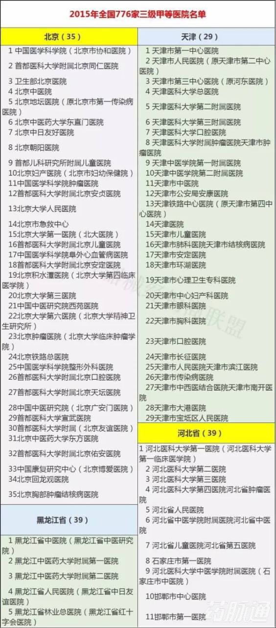 2015年全国776家三级甲等医院名单