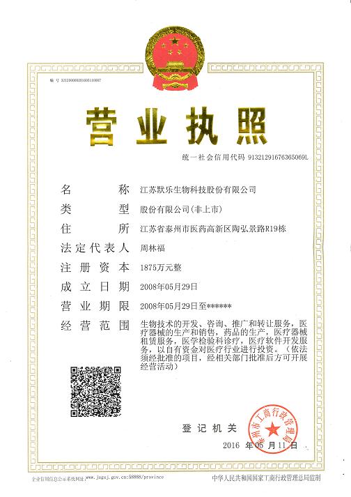 日,经泰州工商行政管理局核准,我公司的公司类型由“有限责任公司”变更为“股份有限公司”,公司名称由“江苏PA直营生物科技有限公司”变更为“江苏PA直营生物科技股份有限公司”;同时公司注册地点也由“泰州医药高新区的