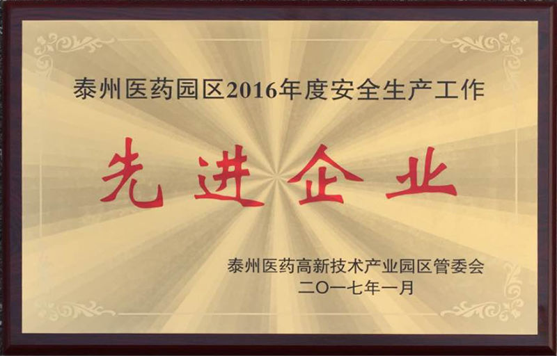 在日前召开的泰州市医药高新区安全工作会议上,我司被表彰为园区“2016年度安全生产工作先进企业”。2016年度,公司坚持“安全第一的方针,始终把安全生产放在一切工作的首要位置,从隐患排查着手,强化全员安全意识,狠抓安全制度的完善与落实,全面实施安全标准化建设,安全工作迈上了新台阶。
