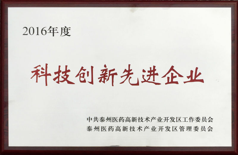 公司再传喜讯,日前被泰州市医药高新区党工委、管委会表彰为2016年度“科技创新先进企业”。此奖项旨在奖励2016年度在科技创新方面取得突出成绩的企业,2家企业从园区近千家企业中脱颖而出。
