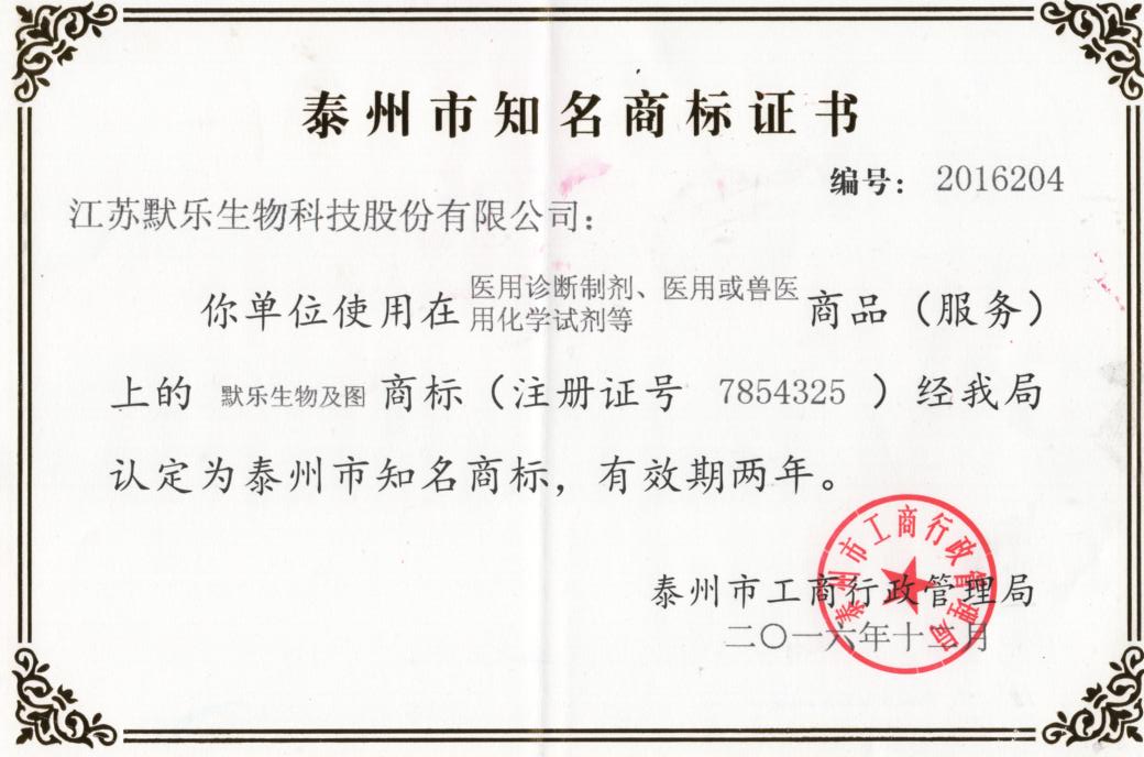 日前,“PA直营生物”被泰州市工商行政管理局评定为“泰州市知名商标”,这标志着公司在打造“PA直营生物”品牌方面向前迈出了一大步,为今后申报“江苏省著名商标”奠定了良好的基础。