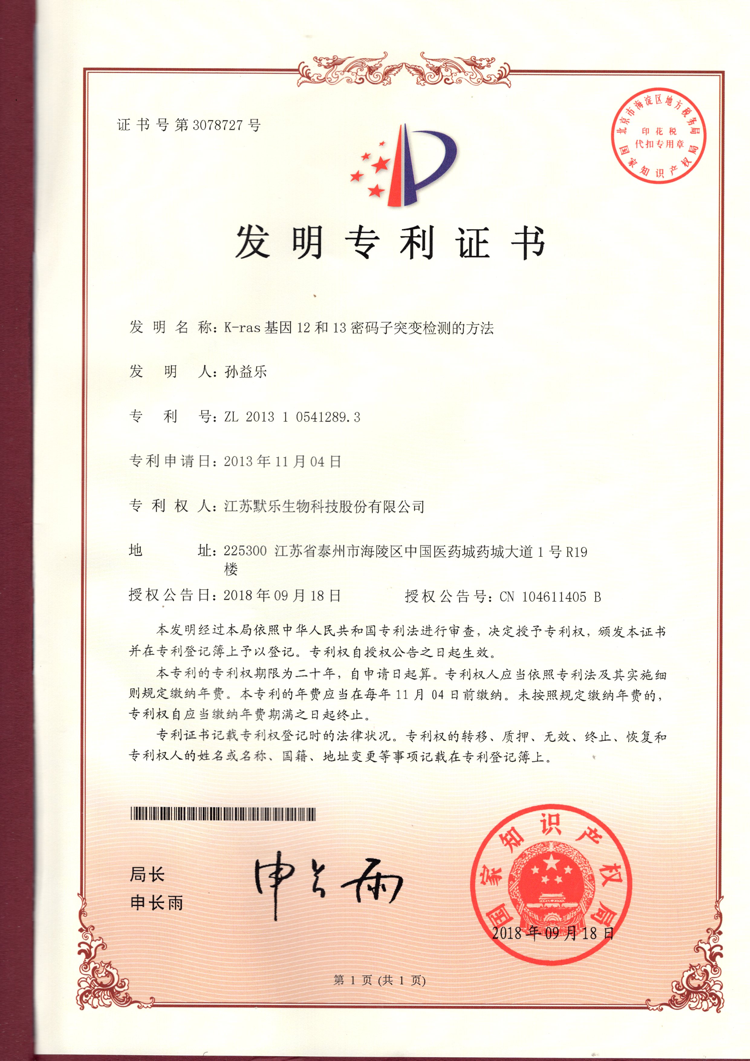 K-ras基因12和13密码子突变检测的方法已获国家知识产权局正式授权。